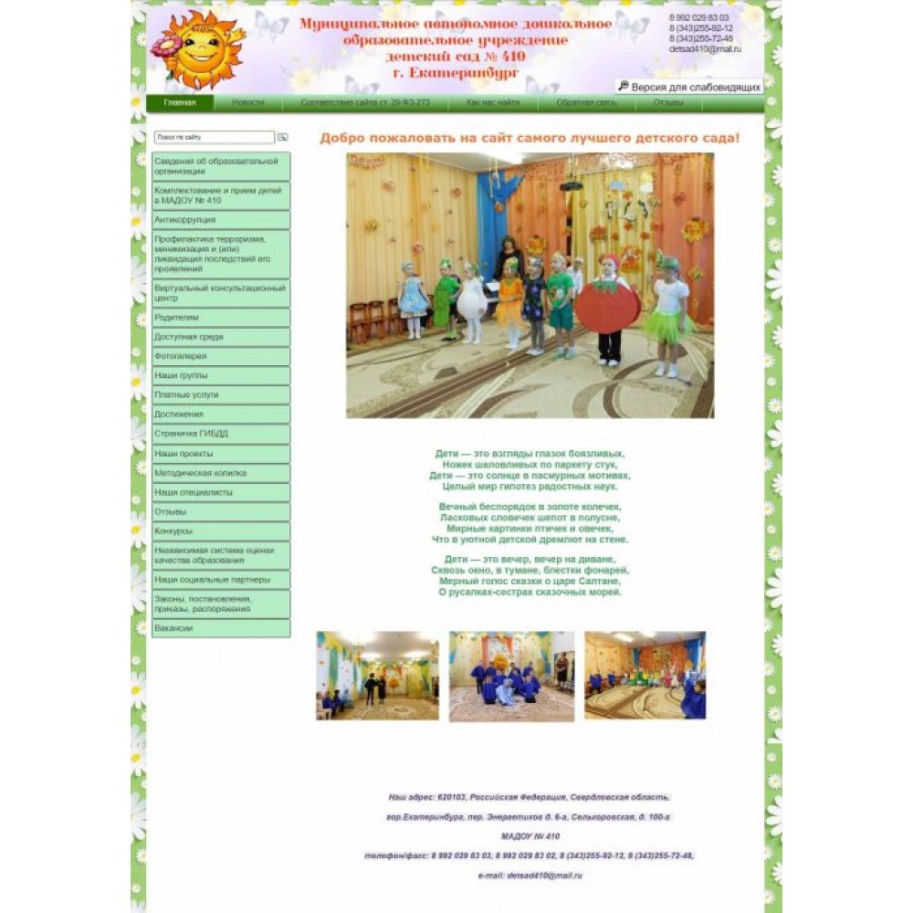 Не дорогой сайт муниципального детского сада от веб-студии Максвебсайт г. Берёзовский