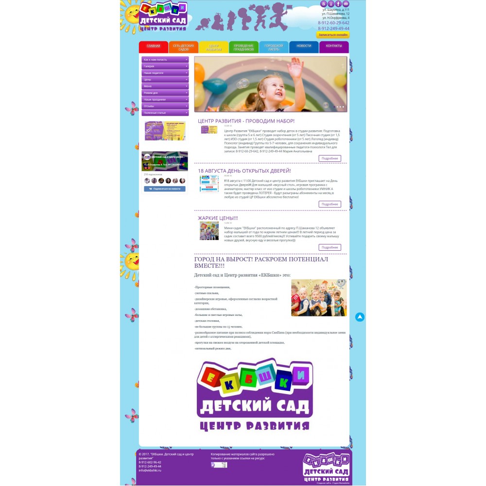 Рекламный сайт сети детских садов Екбшки от веб-студии Максвебсайт г. Берёзовский